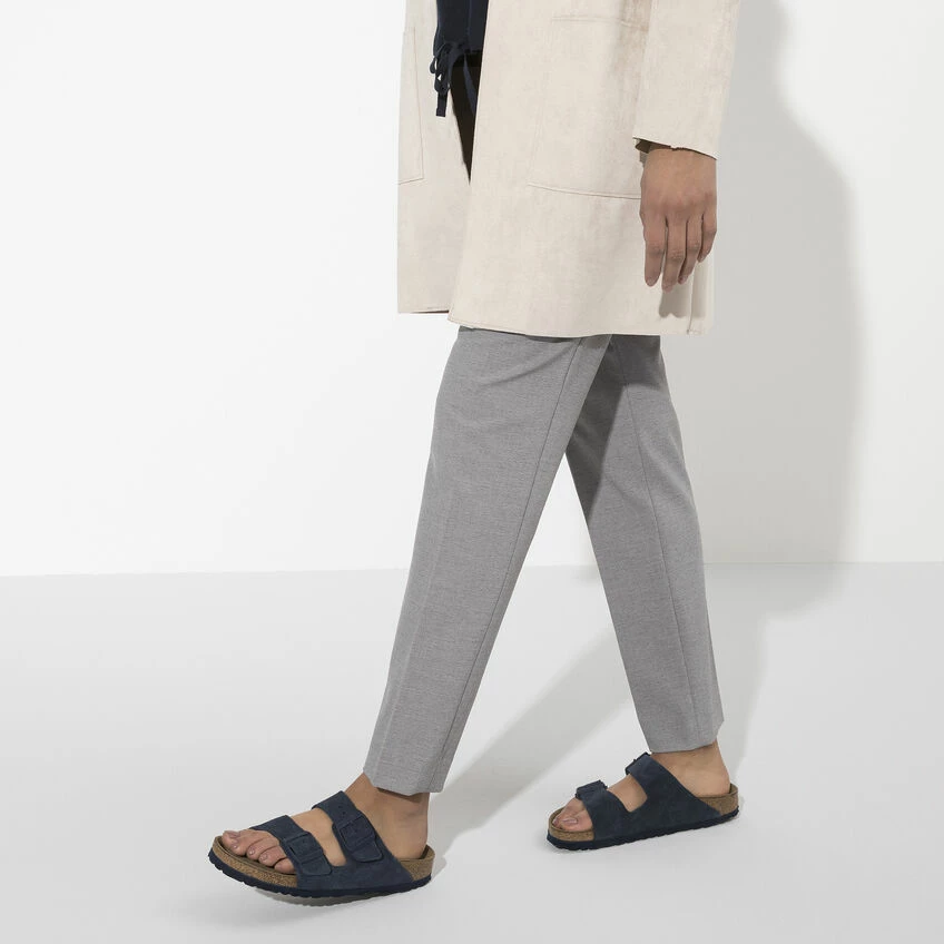 The legendary two-strap design from BIRKENSTOCK – the Arizona. Iconic style complemented with the signature comfort of the BIRKENSTOCK footbed. The tonal buckles with a textile feel and a matte design only add to this iconic style. With its additional foam layer, the soft footbed offers extra comfort all day long. The upper is made from soft suede.
