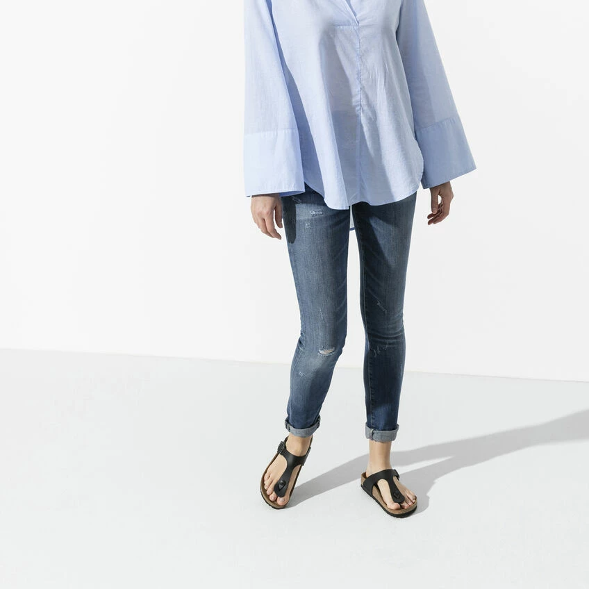 The modern thong sandal from Birkenstock. The Gizeh is an iconic classic with signature support and a refined, minimalist style. Shown in Birko-Florยฎ.