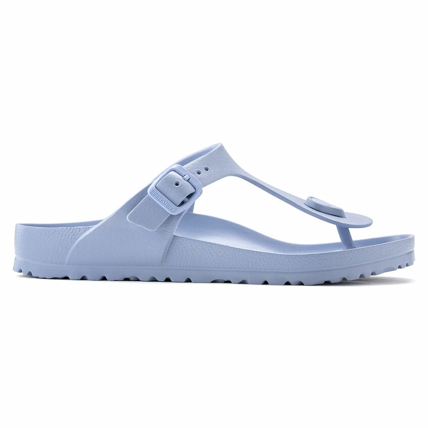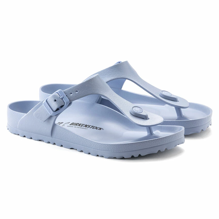 The BIRKENSTOCK Gizeh is our classic thong sandal. Modeled on the cork original, this sandal is made from ultra lightweight and highly flexible EVA. These colorful sandals are shock-absorbent, waterproof, and skin-friendly. Wear them at the beach, in the garden, or in wellness and spa areas. It’s the perfect addition to your classic BIRKENSTOCK sandals.