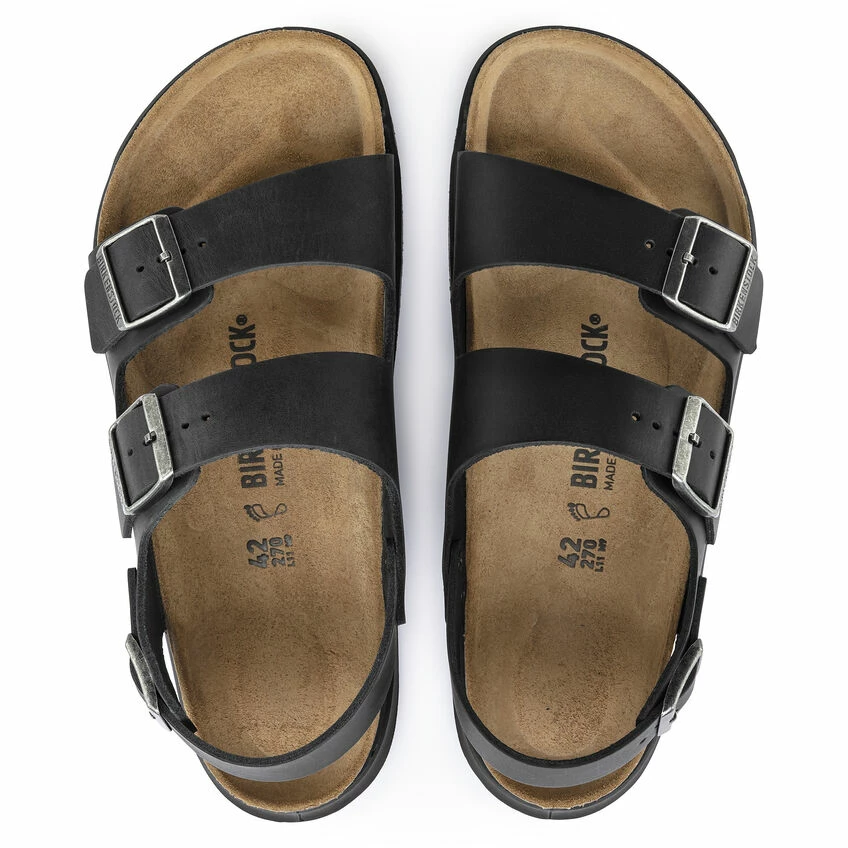 The BIRKENSTOCK Milano is the classic backstrap sandal. This version pairs iconic Birkenstock features including oiled leather uppers, buckle closures and suede footbed liners with direct-injection outdoor-ready outsoles for increased traction and durability.